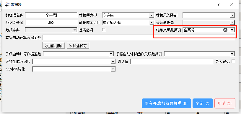 部分繼承自案卷信息的卷內(nèi)數(shù)據(jù)項(xiàng),再設(shè)置數(shù)據(jù)項(xiàng)時(shí)并且可以選擇繼承數(shù)據(jù)項(xiàng),繼承父級(jí)數(shù)據(jù)項(xiàng)信息: