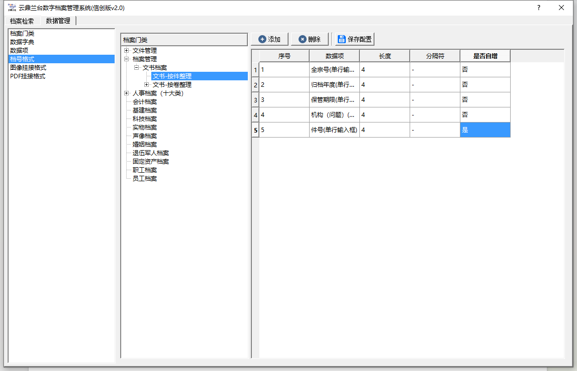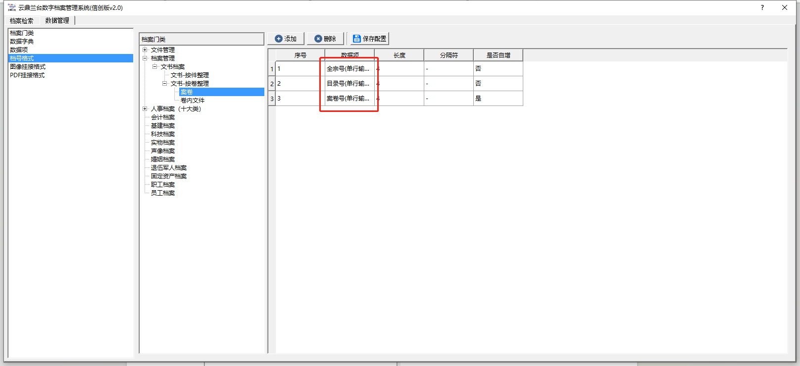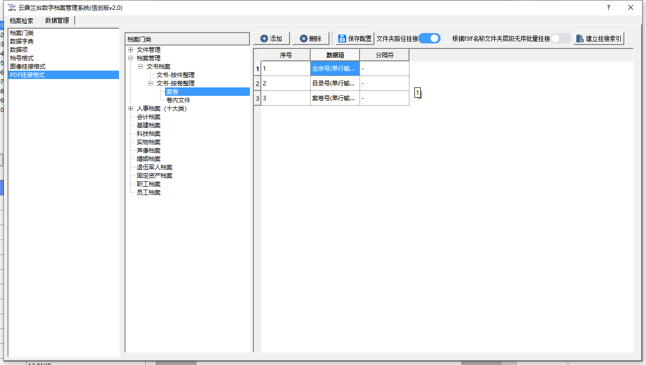 最后再將案卷和卷內(nèi)的檔號(hào)配置給配置了: