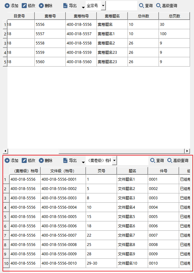 2.&{}&中例如&{題名}&,{}代表著區(qū)分案卷和卷內(nèi)數(shù)據(jù),&{}&為繼承對(duì)應(yīng)條目案卷數(shù)據(jù)項(xiàng)的值,而&{}&為繼承卷內(nèi)數(shù)據(jù)項(xiàng)的值,并且往下動(dòng)態(tài)填寫