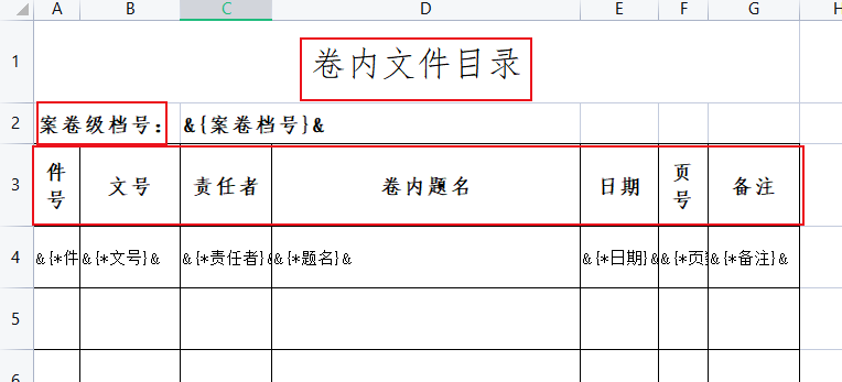 &{}&為占位符:&{}&括號(hào)中的數(shù)據(jù)為選中數(shù)據(jù)的值,注意&{}&與&&{}&&不同,因?yàn)榫韮?nèi)目錄打印模板主要打印的是卷內(nèi),也就是第二層的數(shù)據(jù)(紅色款選內(nèi)容):