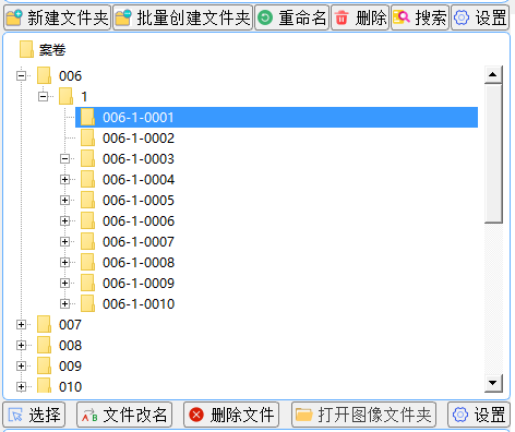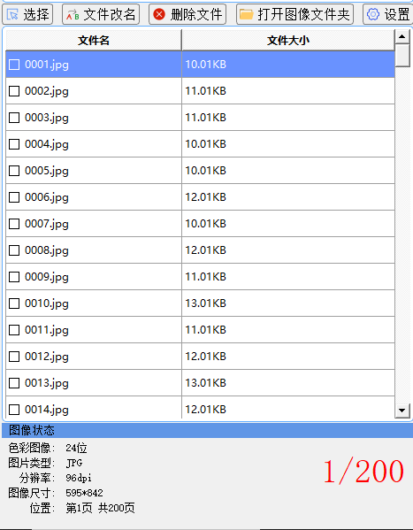 選擇圖像文件、改名設(shè)置、刪除圖像文件、打開選中文件文件夾、設(shè)置圖像文件排名規(guī)則