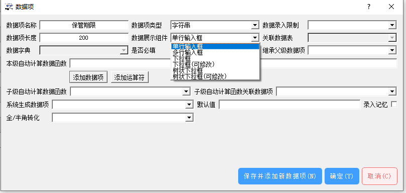 并且將需要改為下拉的數(shù)據(jù)項(xiàng)的業(yè)務(wù)展示組件修改為下拉框