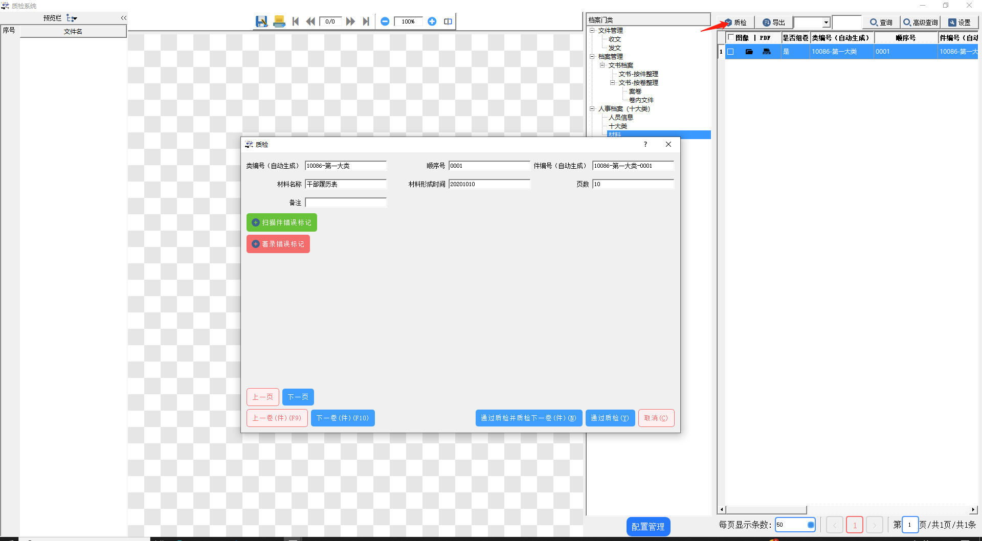 點(diǎn)擊進(jìn)入質(zhì)檢界面,點(diǎn)擊質(zhì)檢,可對(duì)目前選擇的目錄進(jìn)行圖像和掃描件的質(zhì)檢與標(biāo)記