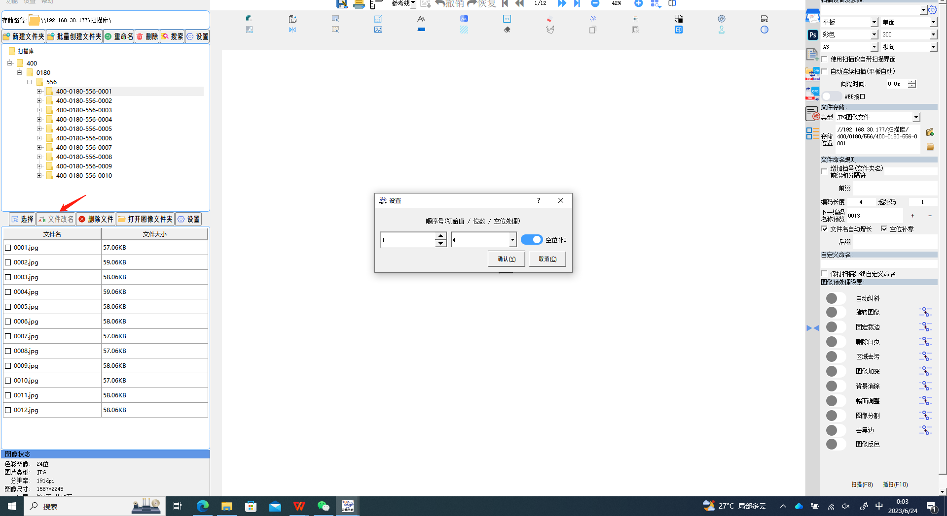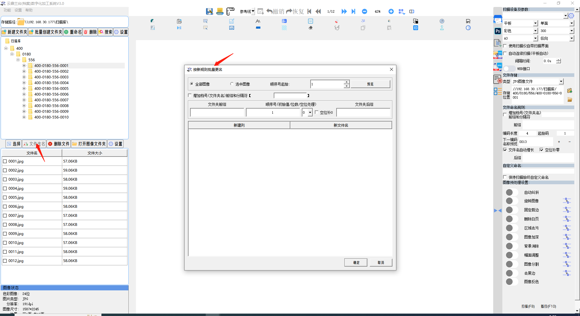 文件改名:按頁碼順序批量更名,需先點(diǎn)擊按頁碼順序批量更名設(shè)置,設(shè)置起始號(hào),位數(shù),是否空位補(bǔ)零,點(diǎn)擊確定保存,便可進(jìn)行按頁碼批量更名。