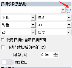 (1)掃描參數(shù)設(shè)置界面,點(diǎn)擊齒輪圖標(biāo)可選擇掃描儀