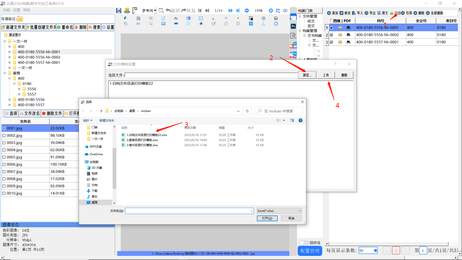 (8)若要打印目錄,需提前設(shè)置好打印模板,點(diǎn)擊打印,選擇設(shè)置打印模板,選擇瀏覽并上傳,再次點(diǎn)擊打印。