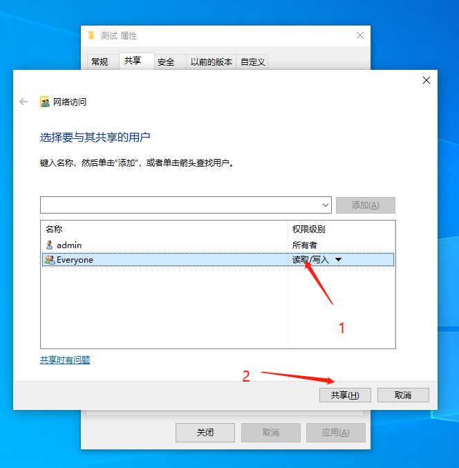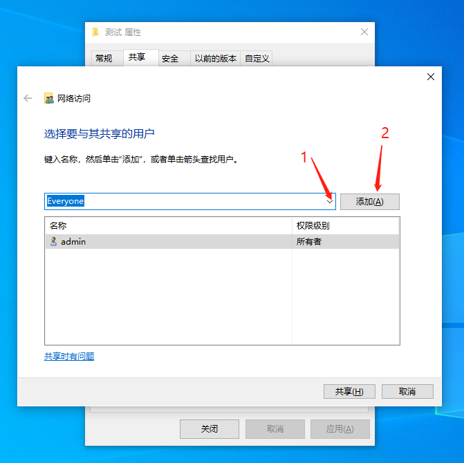 (2),點(diǎn)擊彈出界面的下拉框,選擇everyone,點(diǎn)擊添加
