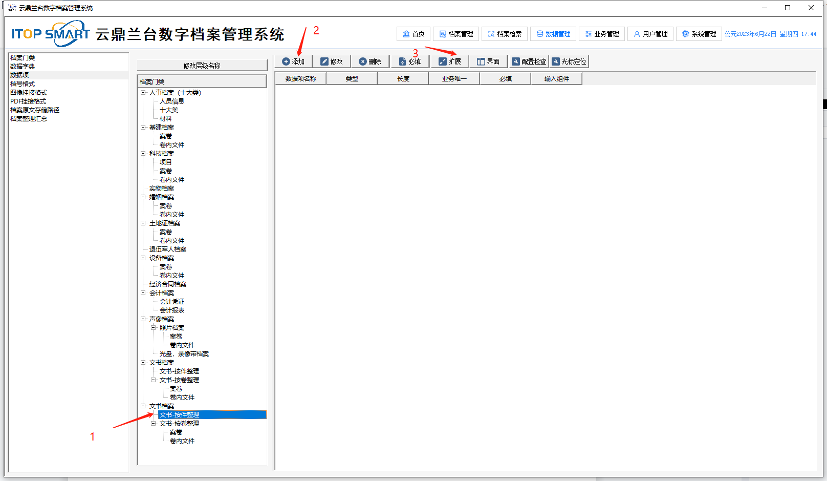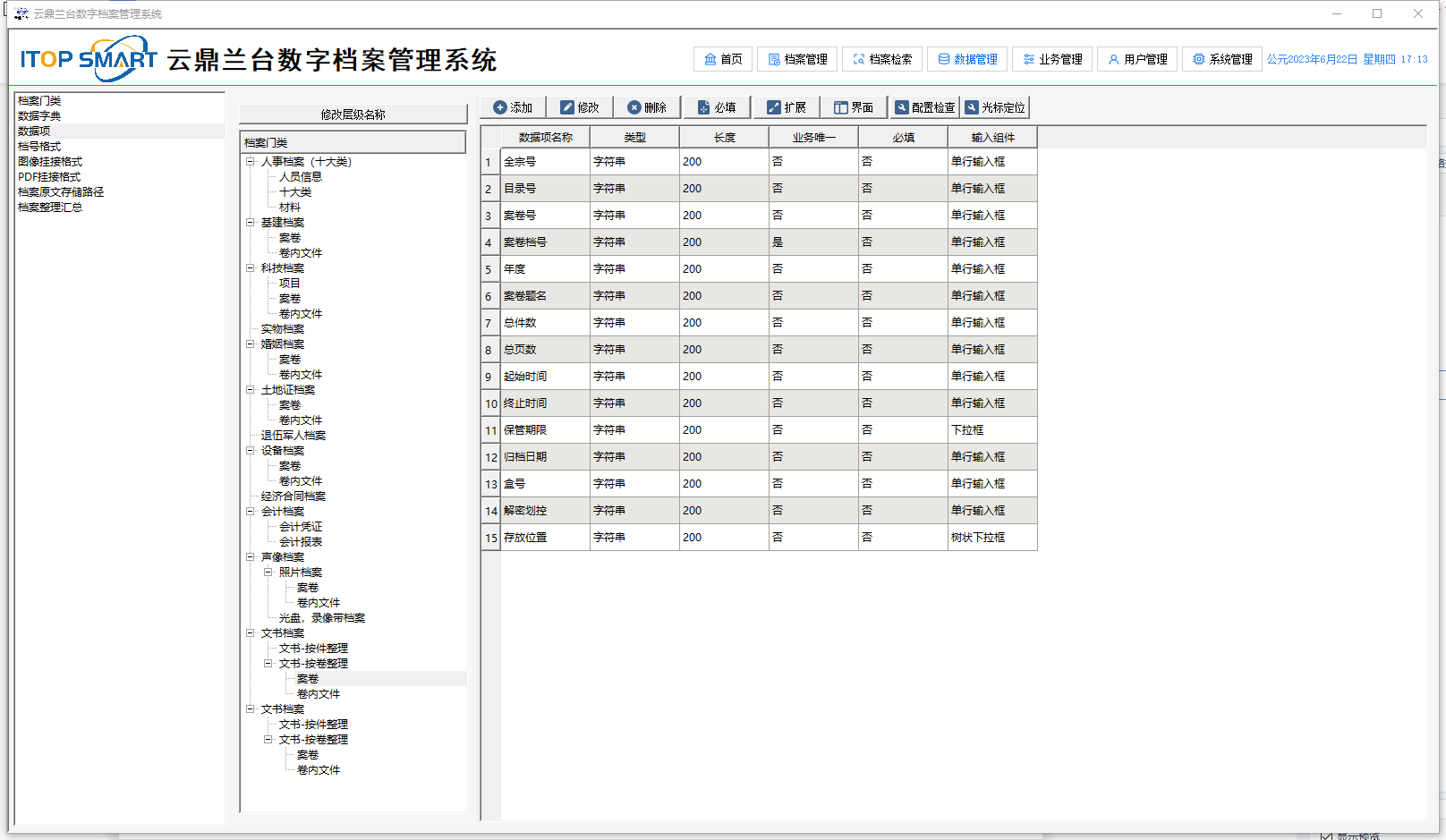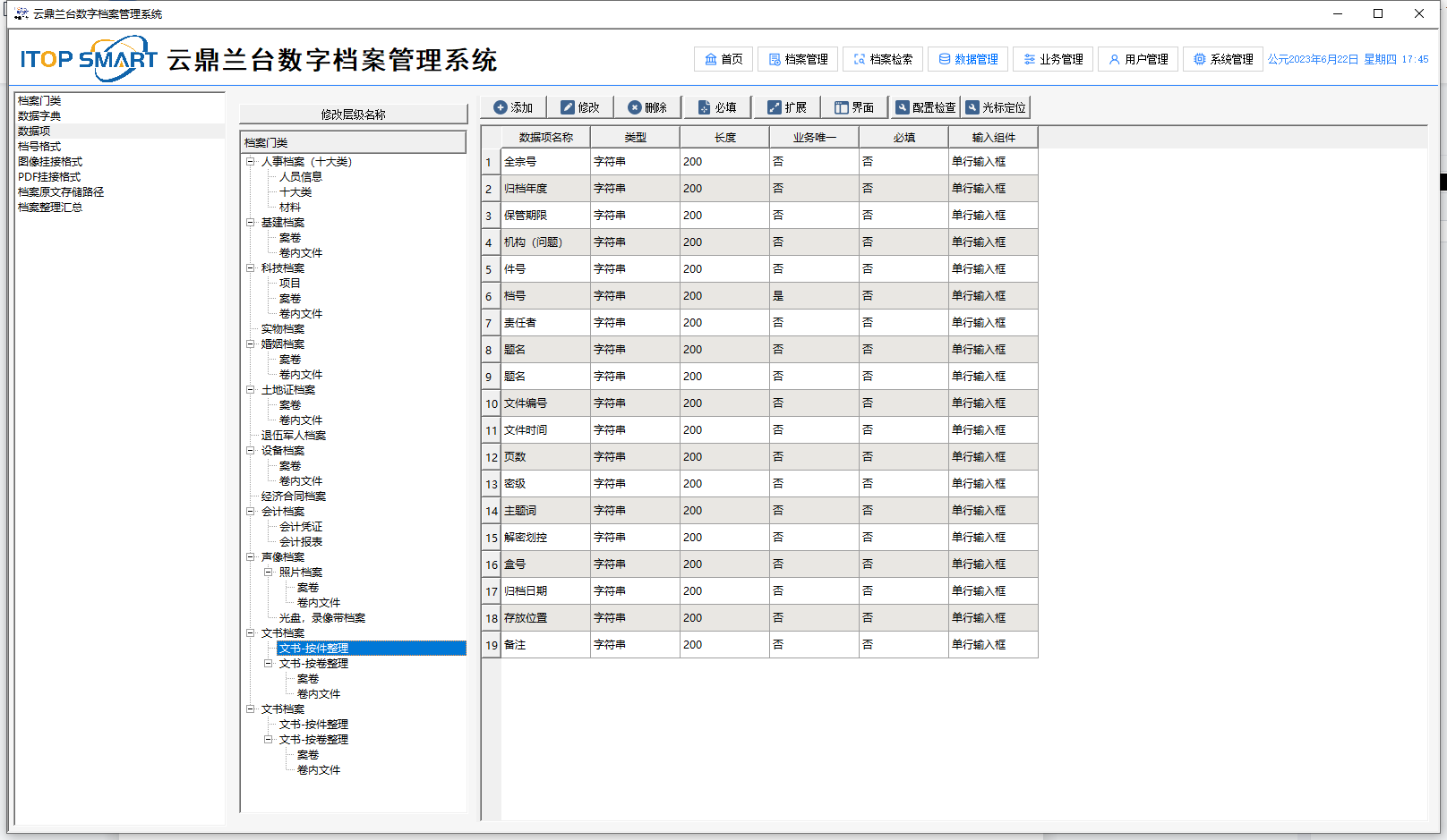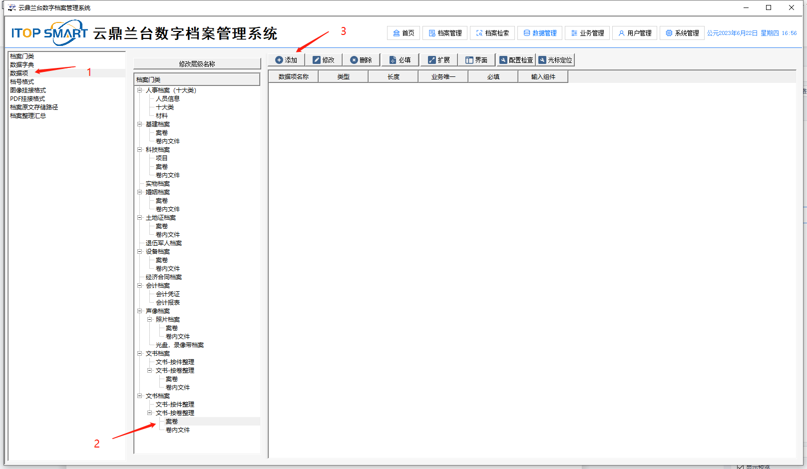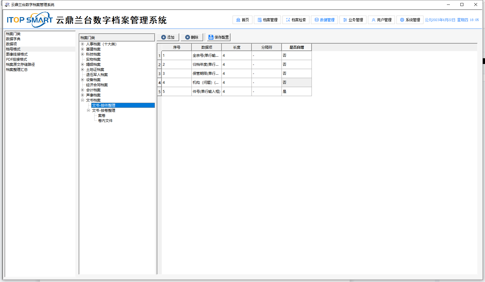四,創(chuàng)建檔案門類并配置數(shù)據(jù)項(xiàng)