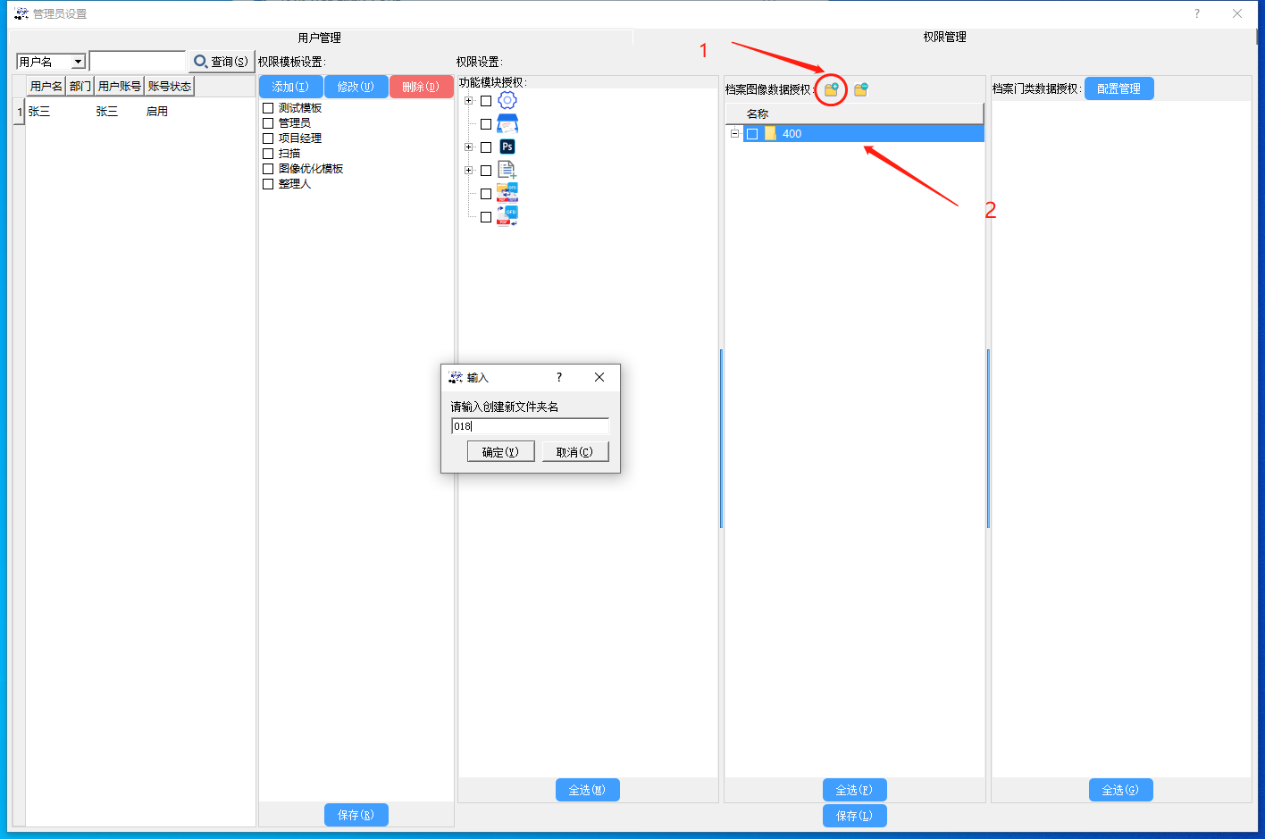 (2),點(diǎn)擊檔案圖像數(shù)據(jù)授權(quán)后的第一個(gè)文件夾圖片,可以于共享文件夾內(nèi)創(chuàng)建單個(gè)文件夾,選擇已創(chuàng)建完畢的文件夾,再次點(diǎn)擊此圖標(biāo)創(chuàng)建文件夾,將為此文件夾創(chuàng)建一個(gè)次級(jí)文件夾。