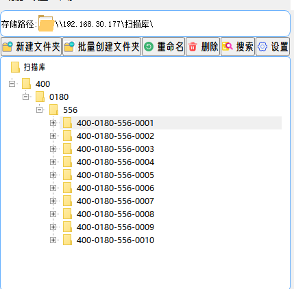 (3),也可以選擇批量創(chuàng)建文件夾,點(diǎn)擊檔案圖像數(shù)據(jù)授權(quán)后的第二個(gè)文件夾圖標(biāo),點(diǎn)擊彈出界面下方的文件夾創(chuàng)建規(guī)則設(shè)置,在彈出界面根據(jù)自己的需求選擇文件夾創(chuàng)建規(guī)則(這里的演示我們選擇多層級(jí)文件夾結(jié)構(gòu),最后一級(jí)完全檔號(hào))。