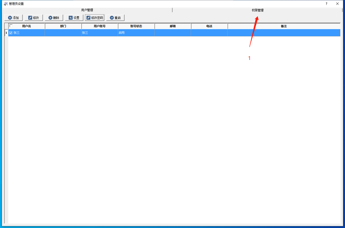 (1),在管理員設(shè)置界面,點(diǎn)擊權(quán)限管理,