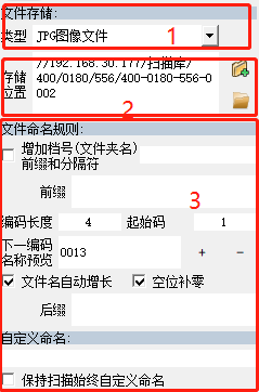 (2)設(shè)置掃描圖像類型,設(shè)置存儲(chǔ)路徑,設(shè)置掃描圖像的命名規(guī)則,