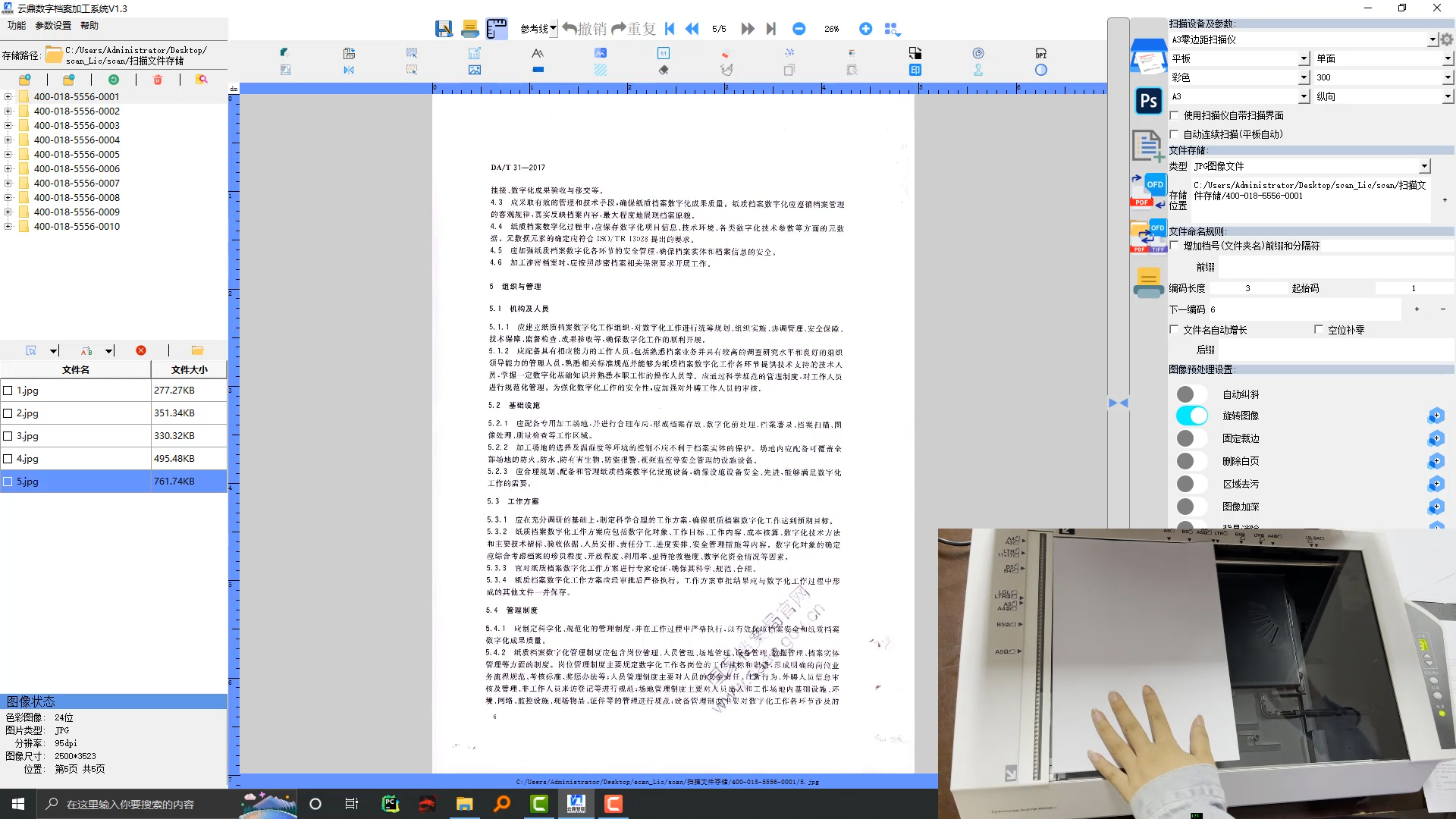 一、檔案掃描:硬件支持:平板掃描儀、高速掃描儀、高拍儀(twain協(xié)議);幅面支持:A0、A1、A2、A3、A4、B5,分辨率:200dpi-1200dpi;文件的存儲(chǔ)類(lèi)型:JPG、TIF,存儲(chǔ)位置:自定義;文件命名規(guī)則:增加檔號(hào)前綴和分隔符、增加前綴、編碼長(zhǎng)度、起始碼、文件名自動(dòng)增長(zhǎng)、空位補(bǔ)零。